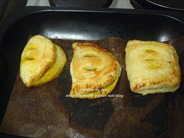 將咖哩酥送進烤箱裡烤約10-20分鐘,直到酥皮puff起來即可。