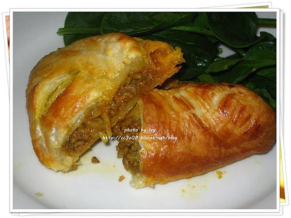 今天做的咖哩酥比較大顆,配上蔬菜就是簡單的一餐了~~